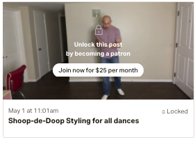 M&K Balboa Addition is being hosted by a real balboa experts with years of combined social dance experience. If you are wanting to learn how to learn Balboa on Patreon, they would be my first choice if I asked me:) There pricing offering is extremely affordable ranging from $5-$40.